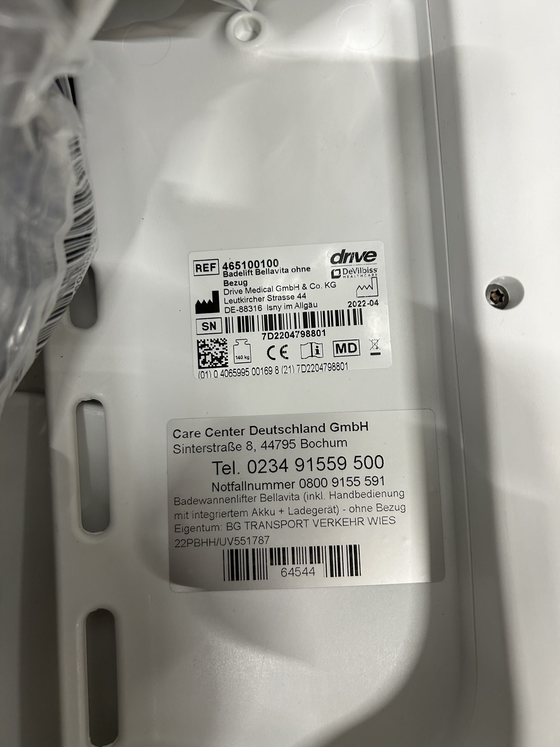 Drive Medical Bath Lift BELLAVITA 2G with Classic White Cover | Ergonomic Bath Lift for Seniors | Electronically Adjustable with Floating Controls | Load Capacity up to 140 kg