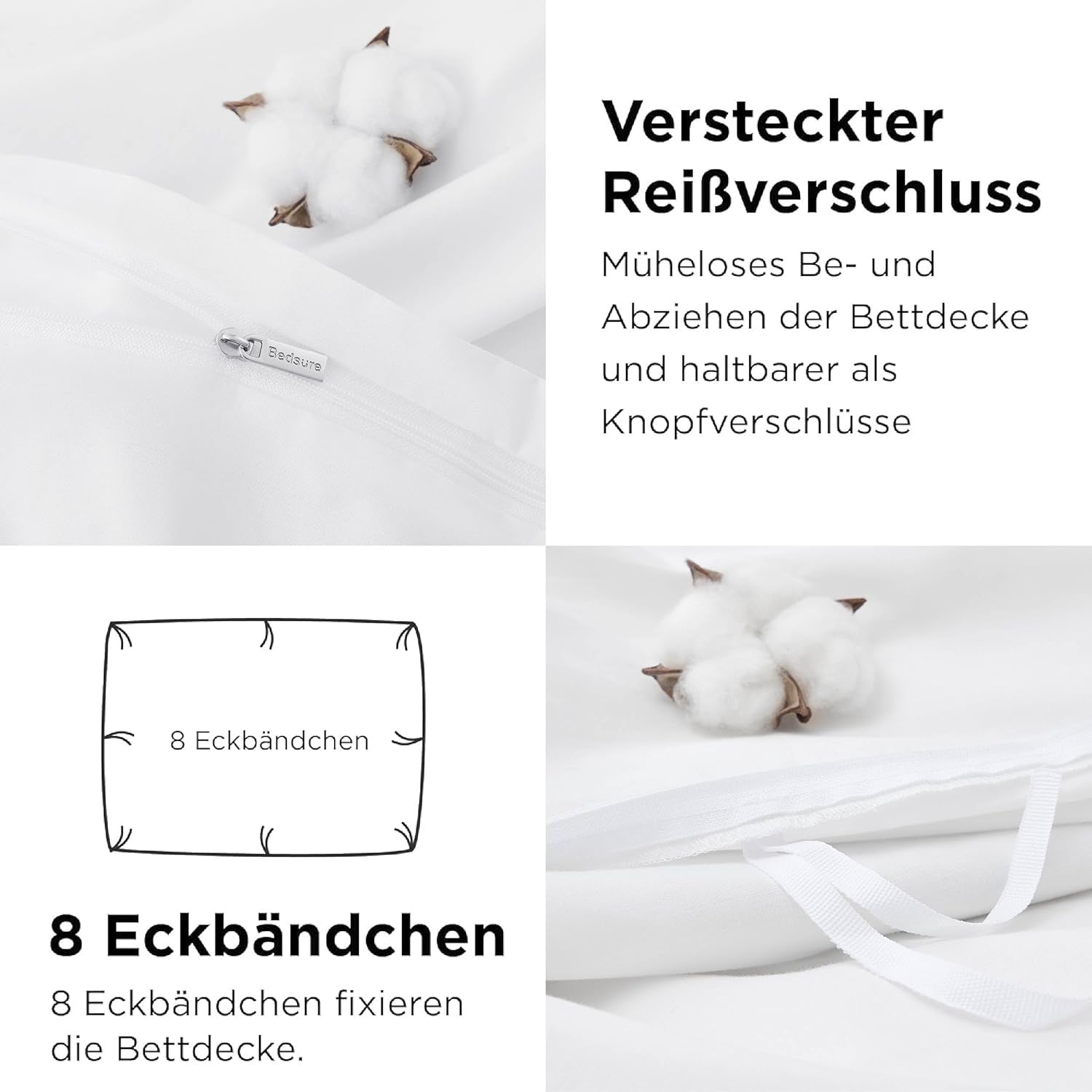 Erleben Sie ultimativen Schlafkomfort mit unserem hochwertigen Bettwäsche-Set von BEDSURE. Das 3-teilige Set in klassischem Weiß besteht aus einem Bettbezug (155x220 cm) und zwei Kissenbezügen (80x80 cm) aus reiner Baumwolle.