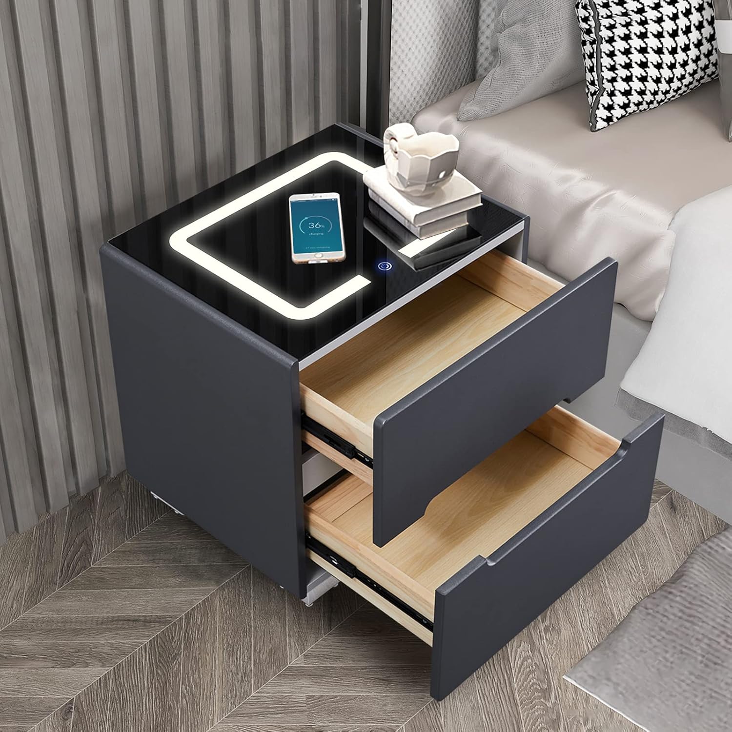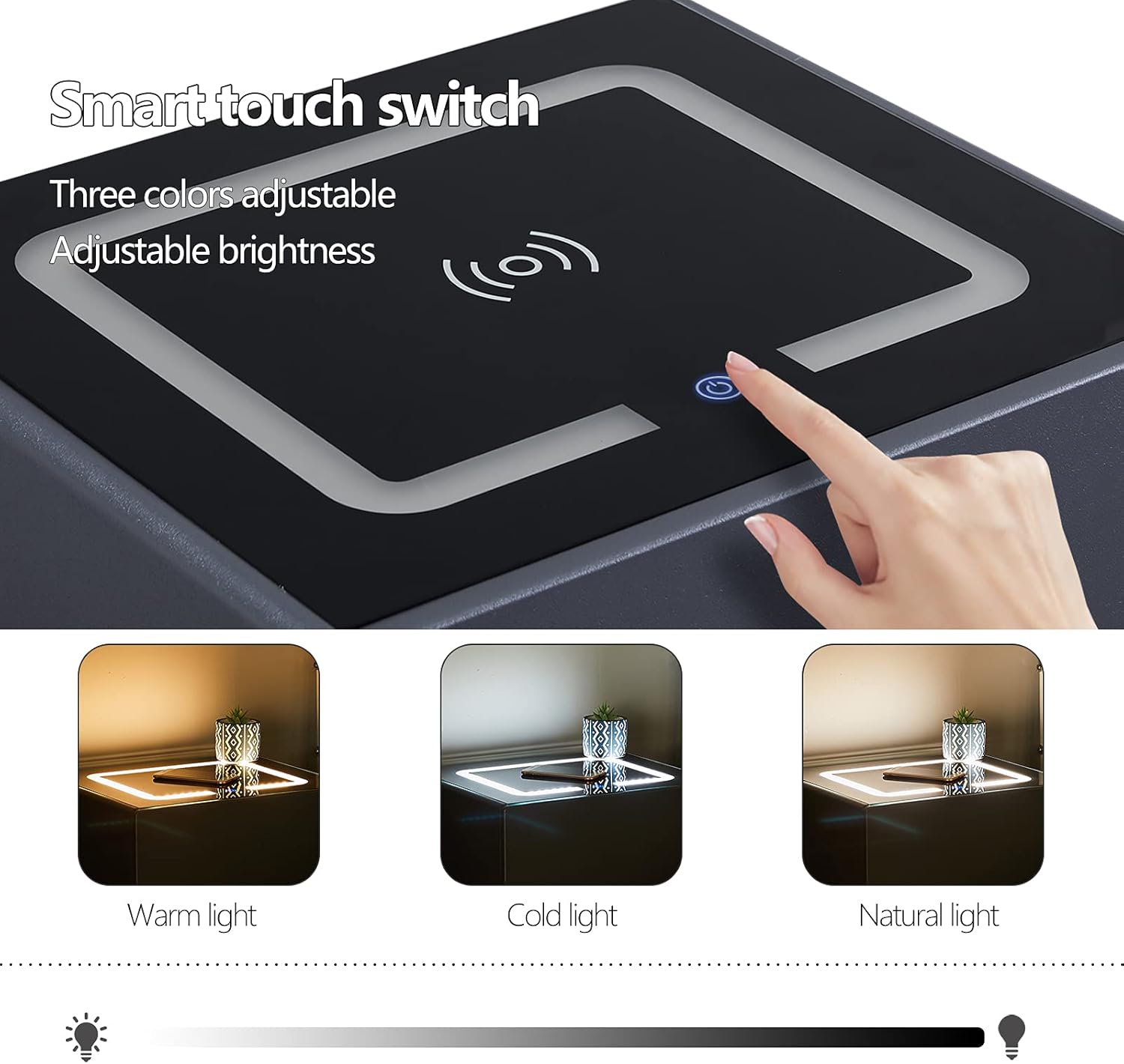 Table de chevet pour chambre à coucher avec chargeur sans fil et commande tactile couleur
