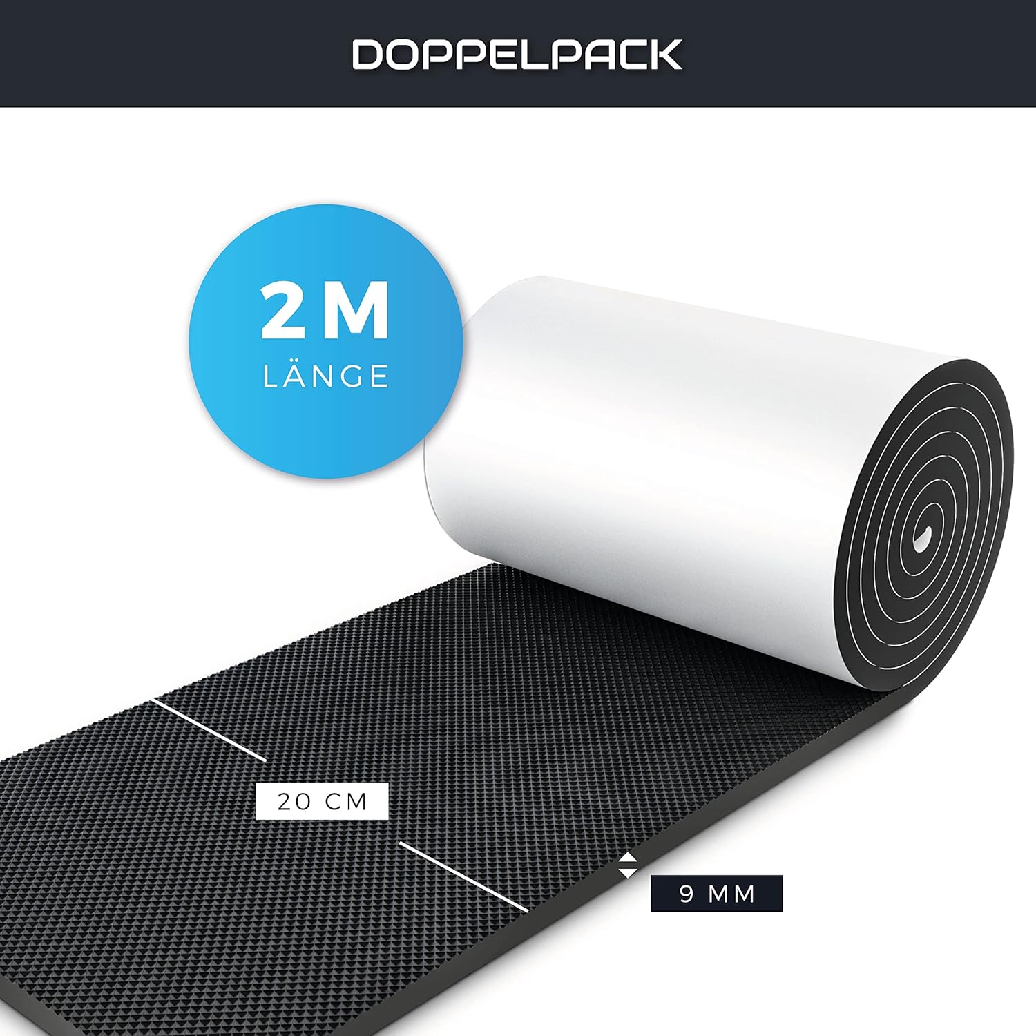 Einfach anzubringen, bietet er optimalen Schutz mit 2 Rollen je 2m Länge, 20 cm Breite und 9 mm Höhe.