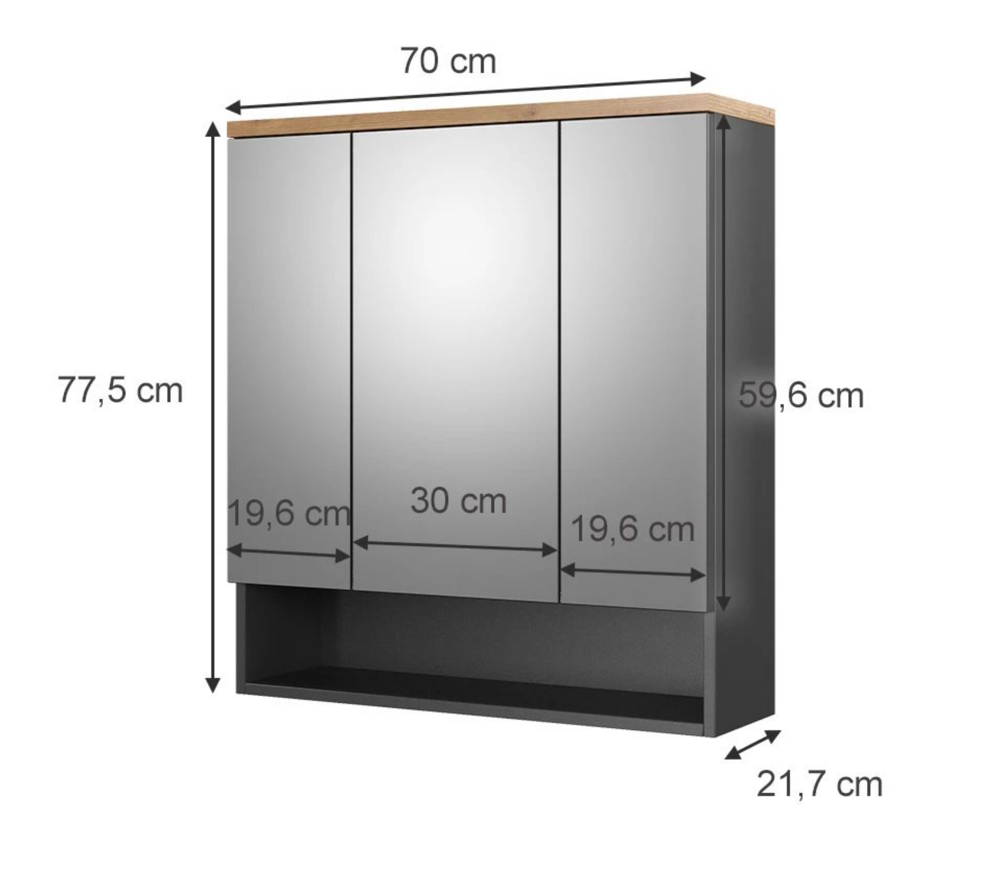 VICCO Badspiegelschrank Anthrazit 70 x 77.5 cm, Eden