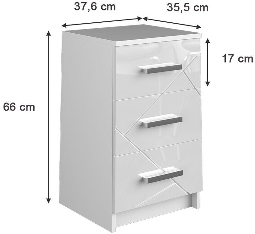 Entdecken Sie die Eleganz und Funktionalität des Vicco Nachttisch Irma! Der hochglänzende Weißton verleiht Ihrem Schlafzimmer einen modernen Look und sorgt für ein helles, freundliches Ambiente. Mit 37,6 x 66 cm bietet er ausreichend Platz für Ihre persönlichen Gegenstände und ist dabei platzsparend und formschön gestaltet. Ein Muss für jedes stilbewusste Schlafzimmer!